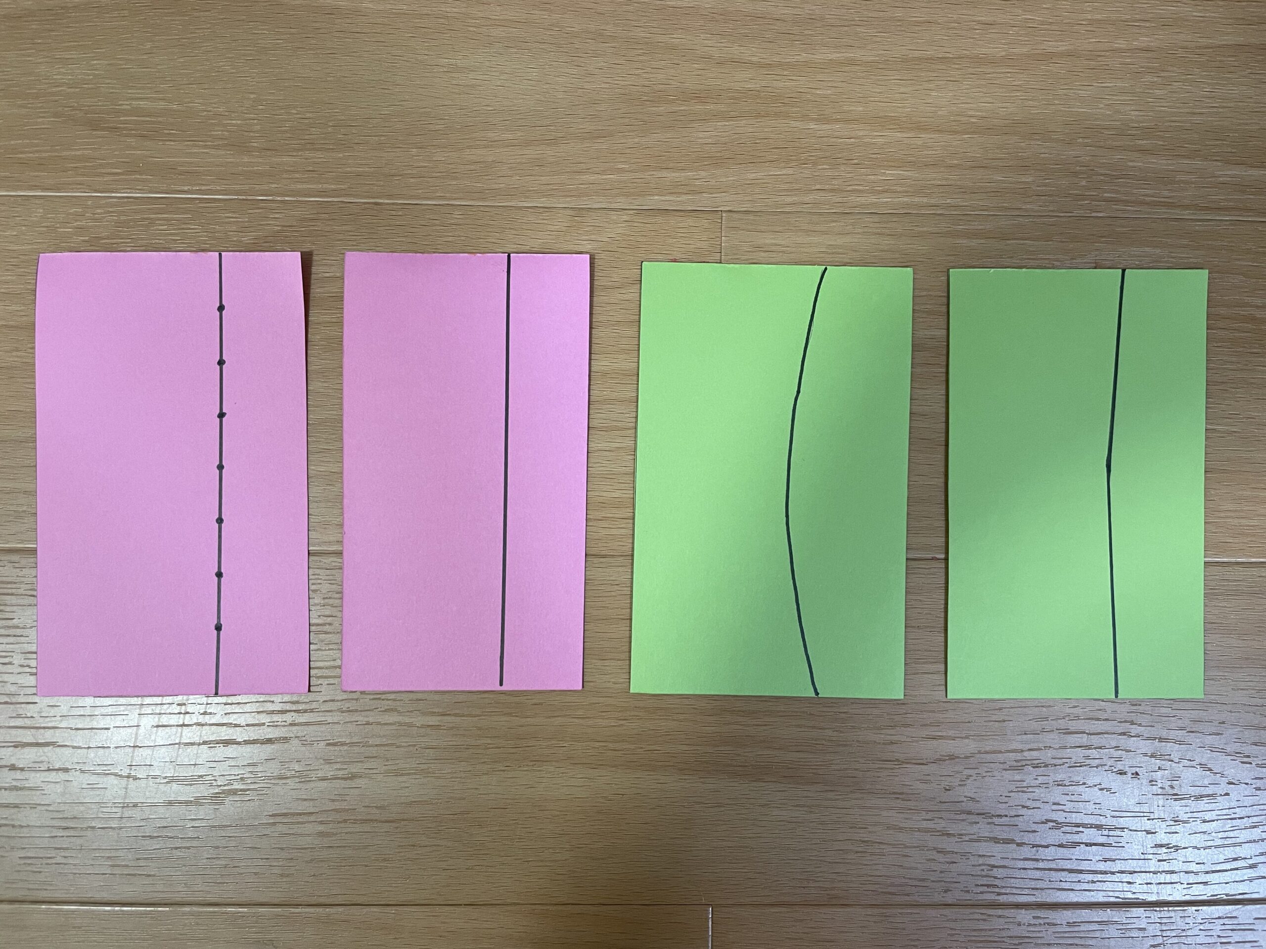 - 1.5〜2cm間隔で直線の上に点を書いておくと、はさみを開閉するタイミングが分かりやすい。