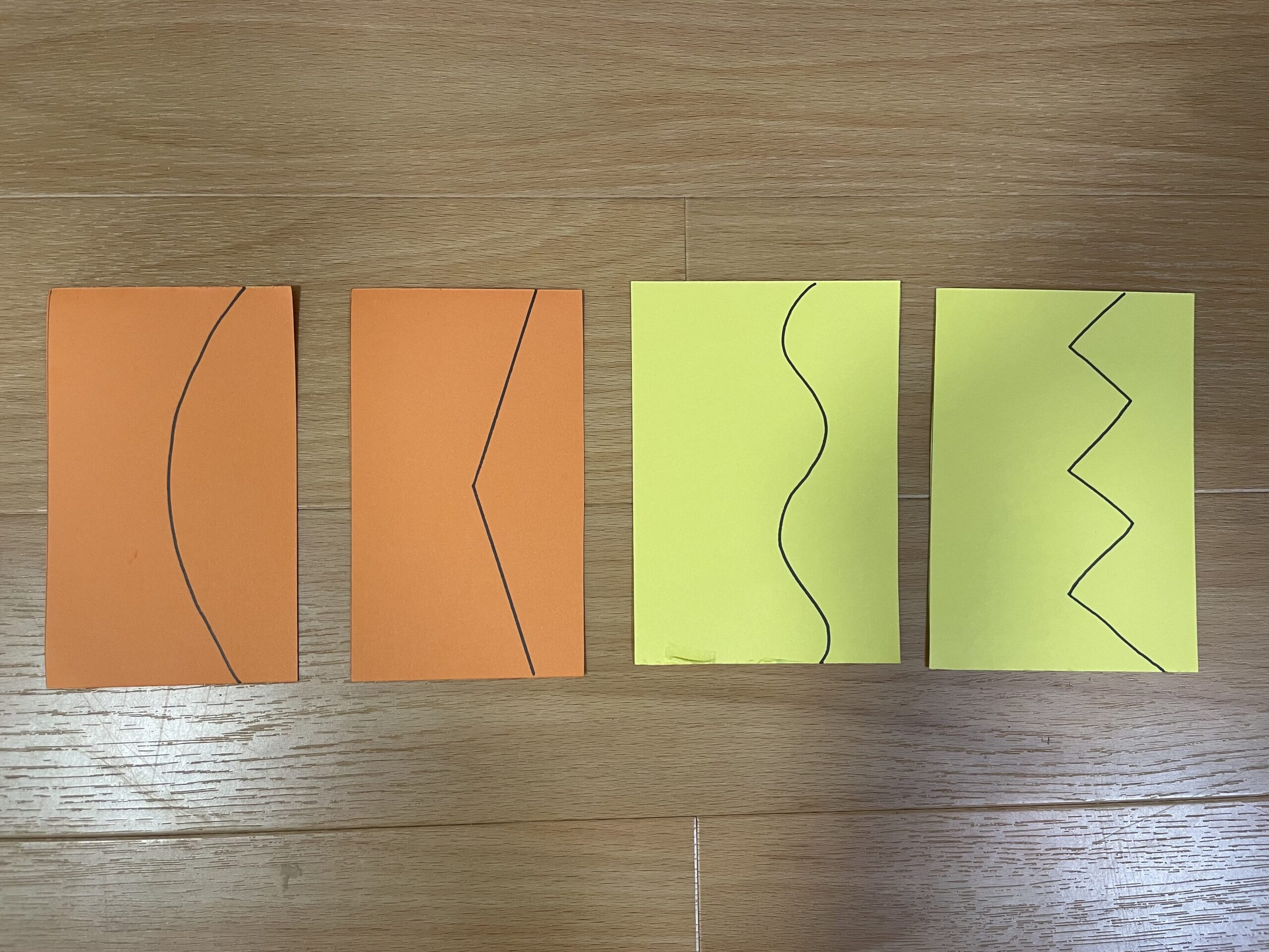 切り抜きにも挑戦してみましょう。どこから切り始めるかガイドの線や目印を入れると、分かりやすくなります。