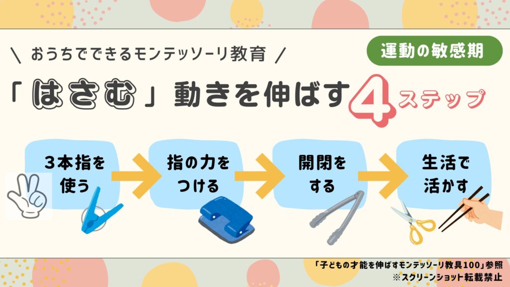 運動の敏感期に身につけたい動きの一つに、「はさむ」があります。