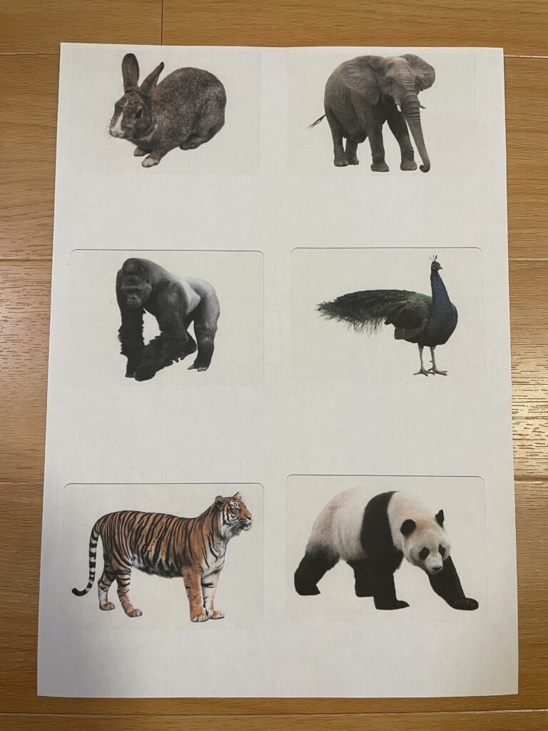 DAISOの絵カードは、6枚並べて印刷できます。このとき、カードの下に余白を空けるようにしてください。
