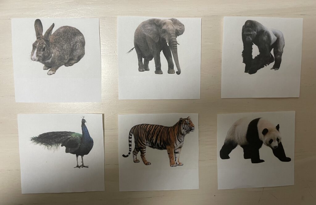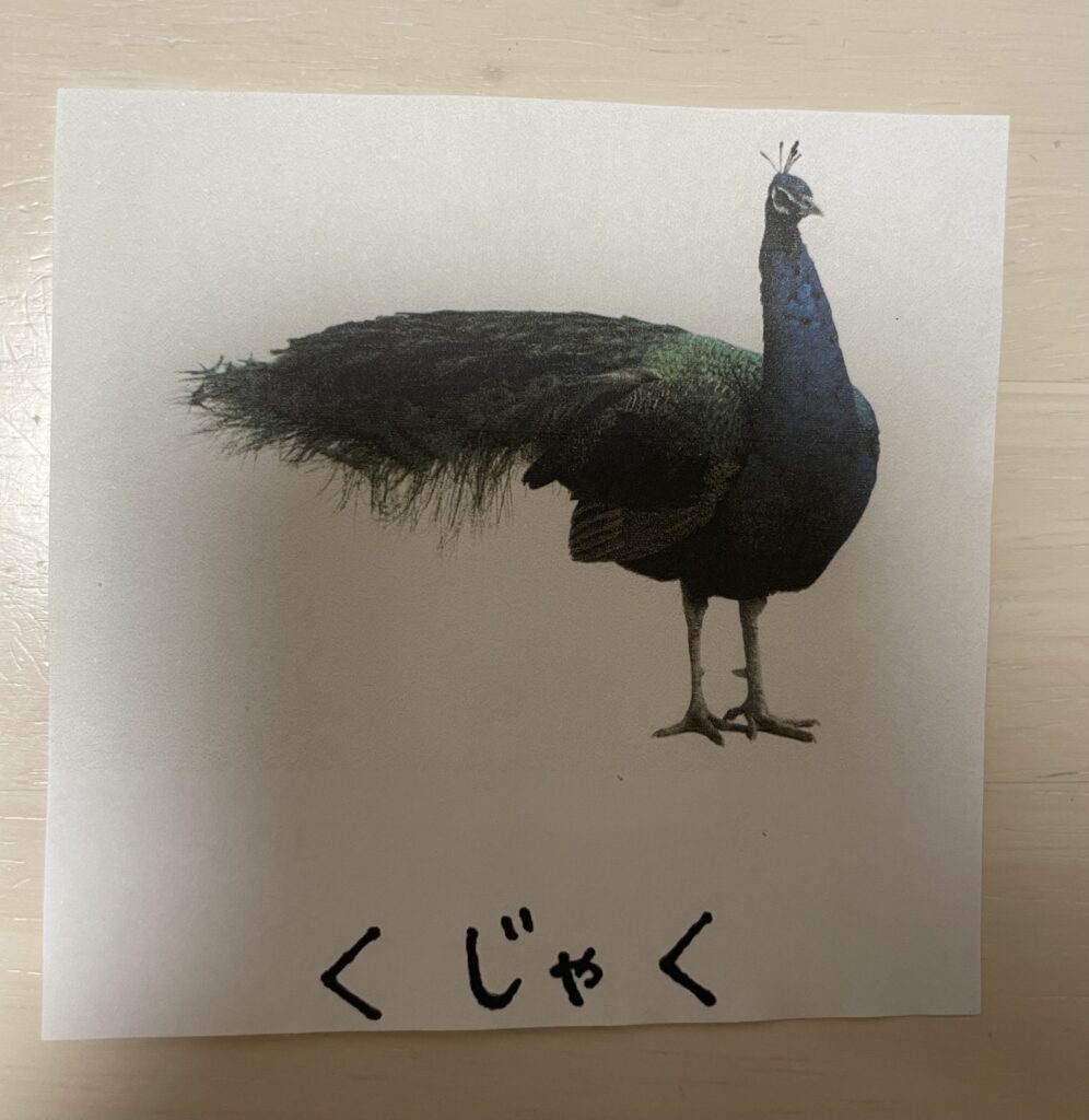 - 絵カードを印刷します。(私は公文の絵カードをコピーし、単語は「教科書体」を印刷して貼り合わせています。)