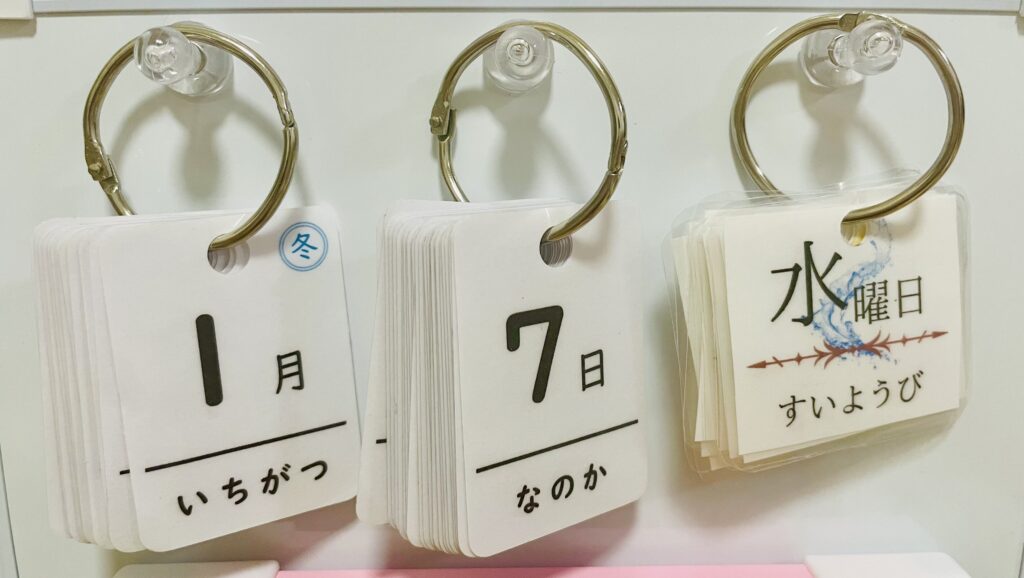一番手軽で効果的な方法は、子どもと一緒にカレンダーを見る習慣をつけることです。「今日は〇月〇日、〇曜日」と日付を指差しながら伝えることで、数字や日付の理解へと繋がっていきます。