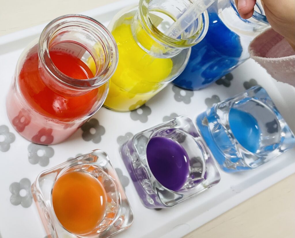 今回は、自宅で簡単に取り組める色水合わせのおしごとを2つ紹介しました。
