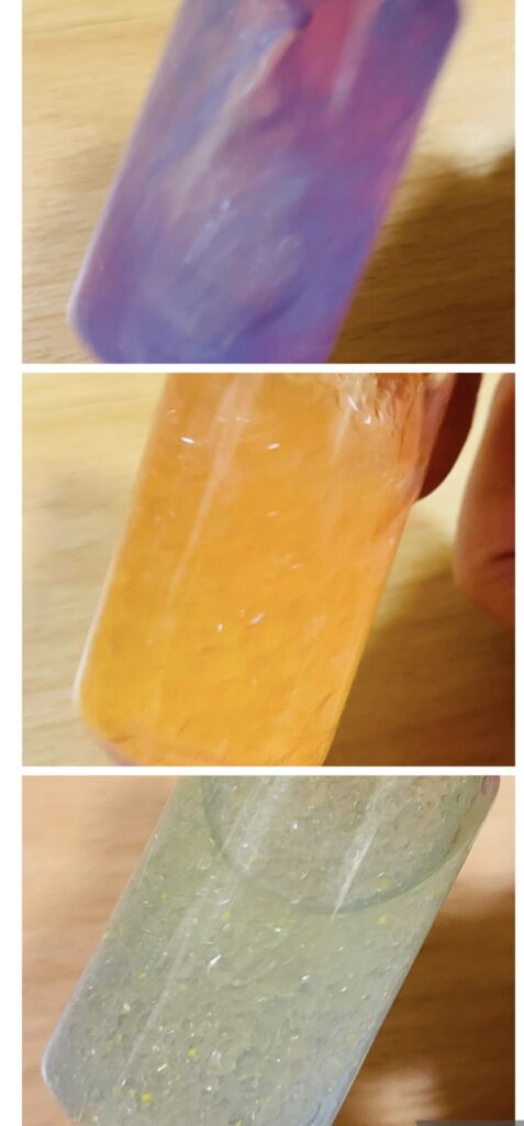 実は、教具を作るためにかなり試行錯誤をしました。最初は【油性の絵の具】✖️【水性の絵の具】で作りましたが、時間が経つにつれて油性の色が抜けてしまい、色素沈殿が戻らなくなってしまいました。
