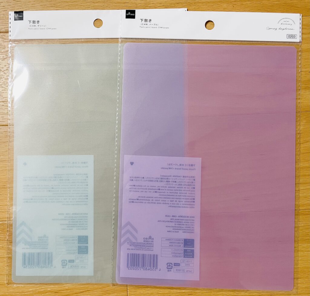のりを塗り伸ばすとき用、台紙に貼るとき用と、2枚の下敷きを用意しています。(潔癖症タイプでなければ、1枚で充分かもしれません・・・)
