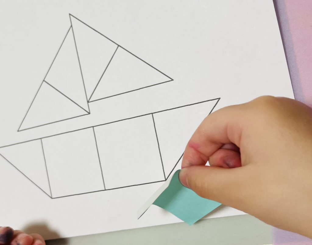 また「図形」への興味がまだ薄く、可愛い色やデザインの色紙を「持っていたい」願望が強いと感じていました。