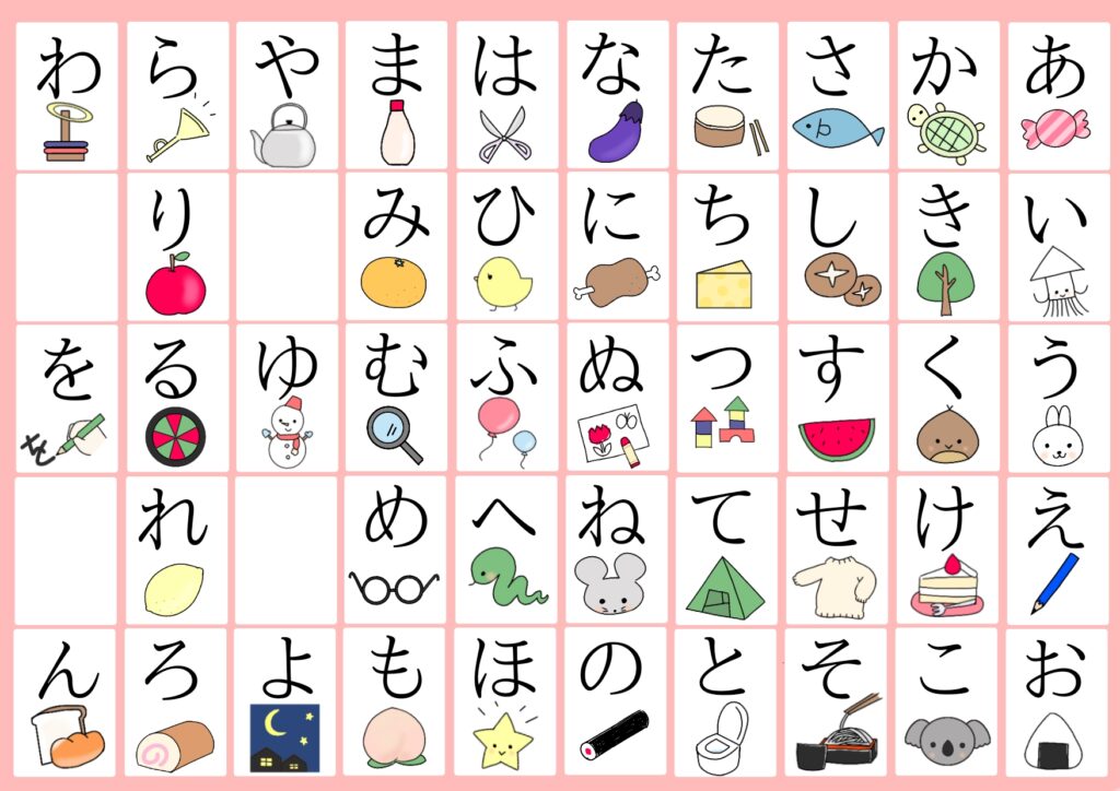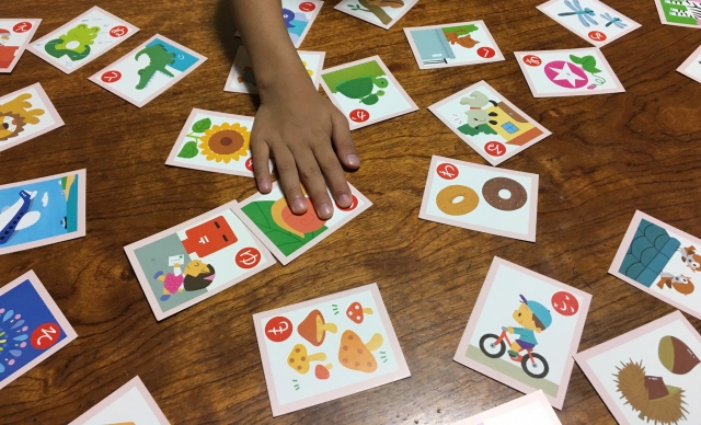文字を選ぶためのアイテムとして、ひらがなカードやカルタを準備しましょう。無料で準備をしたい場合は、「ちびむすドリル」などのサイトからひらがな表を無料ダウンロードするのがおすすめです。