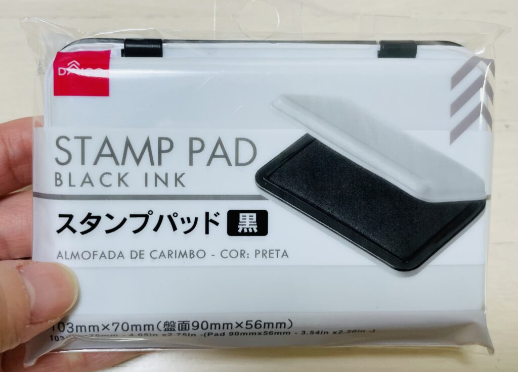 私はDAISOの「スタンプパッド黒」を使用しましたが、どのインクでも問題ありません。