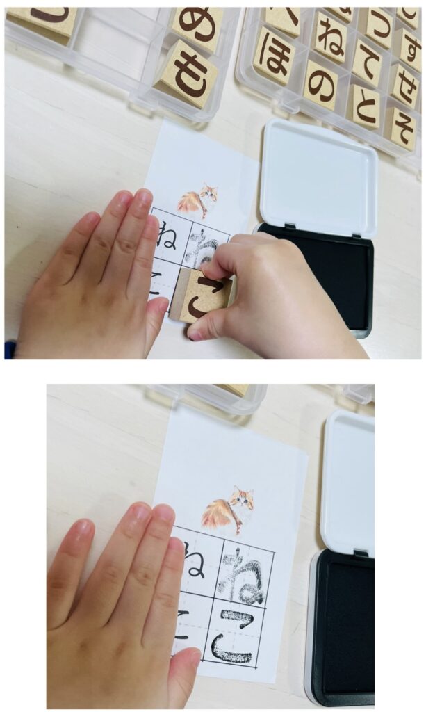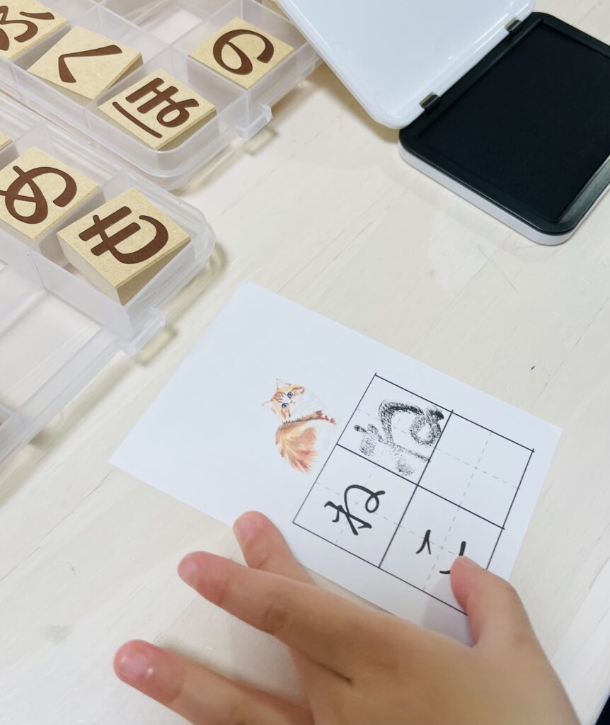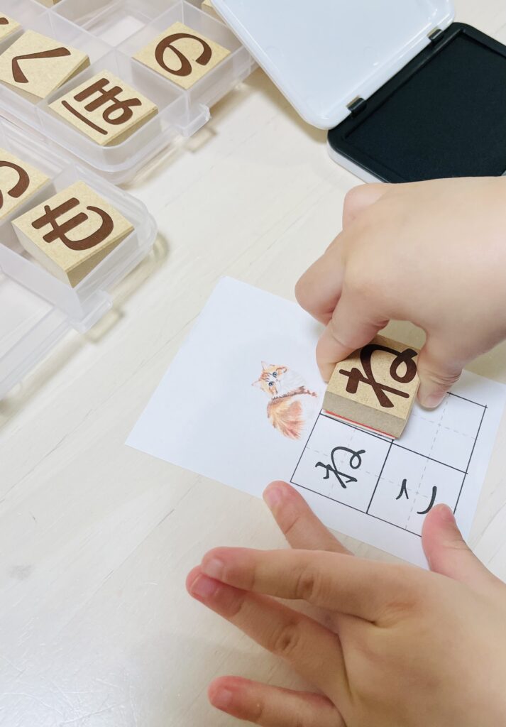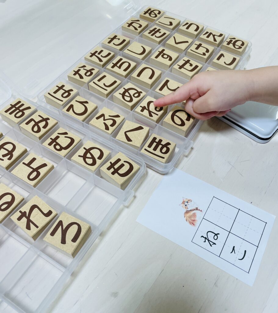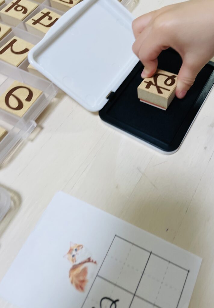 今回は、モンテッソーリの言語教育の一つ、「ひらがなスタンプ」を紹介します。